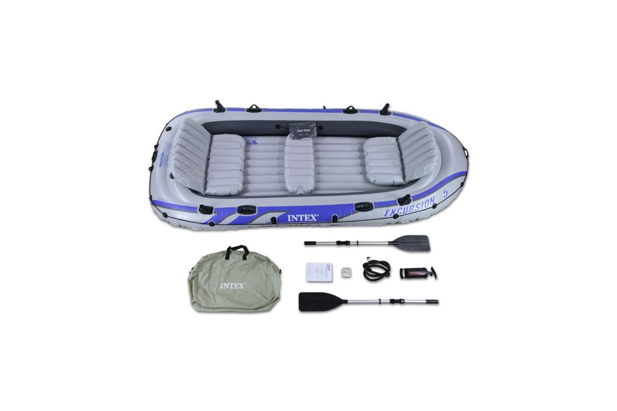 Пятиместная надувная лодка INTEX EXCURSION 5 Set 68325 выполнена из 2-х слоев винила толщиной 0, 75 мм. Рассчитана на 5 человек. Лодка делится на 3 надувные части: корпус, внутренний отсек, пол. Такое строение обеспечивает максимальную устойчивость пассажиров. Клапаны в каждой части помогают быстро накачать и сдуть изделие.