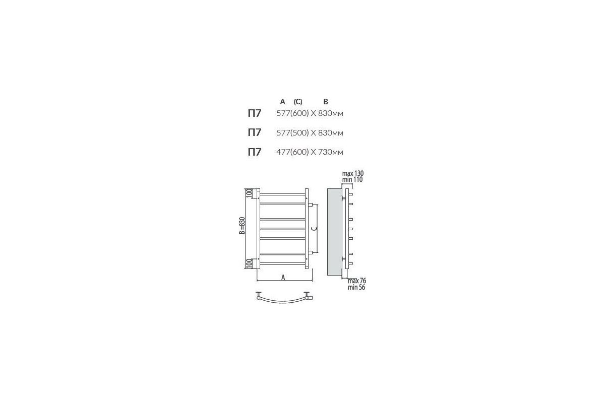 Полотенцесушитель Terminus Классик представляет собой классическую конструкцию ''лесенка'' из двух вертикальных труб круглого сечения диаметром 32 мм и шести слегка изогнутых равноудаленных горизонтальных труб круглого сечения диаметром 20 мм, расположенных между основных труб. Ширина полотенцесушителя Классик П6 с боковым подключением составляет 500 мм, высота 730 мм, подключение боковое 1'' (один дюйм), межосевое (монтажное) расстояние 600 мм, теплоотдача 220 Вт.