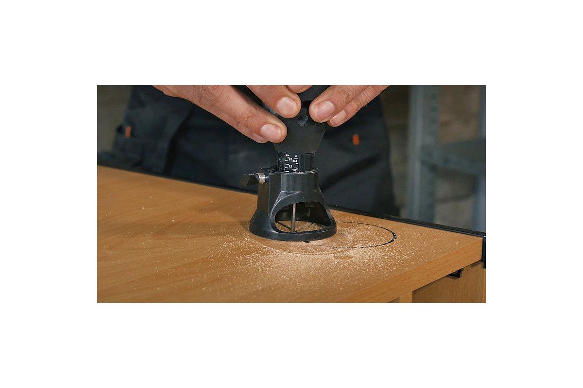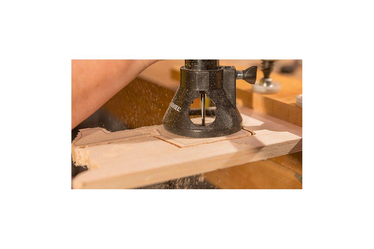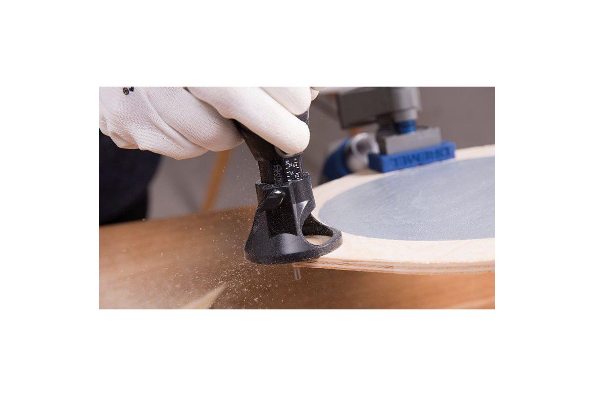 - Легкое регулирование глубины при обработке материала, смотровое окно обеспечивает видимость линии реза.