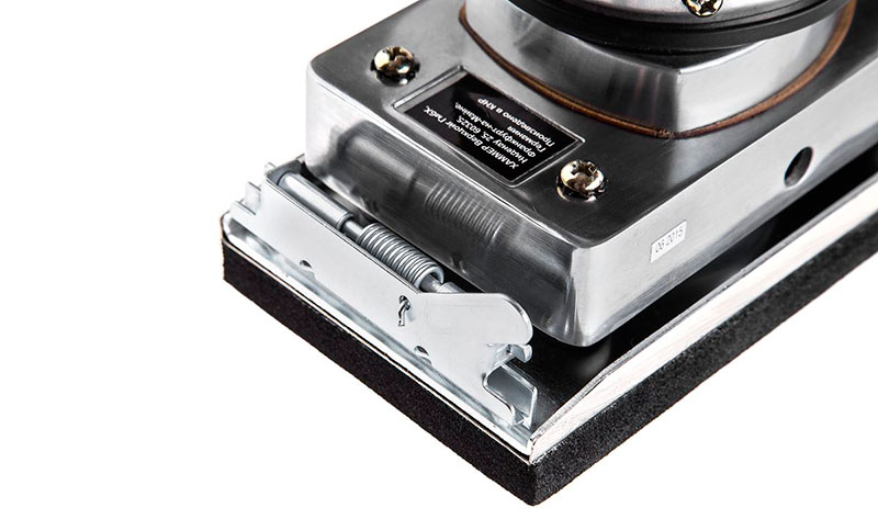 - Оснастка плотно фиксируется зажимами. На замену уходит пара секунд, во время работы шлифлисты не слетают и не заминаются.